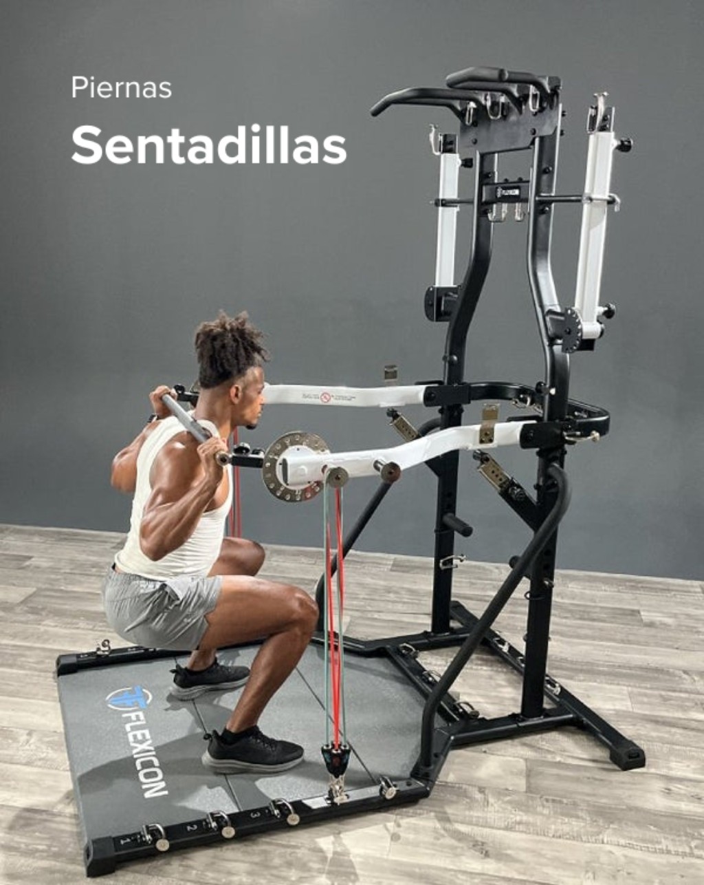 Dentro de esta categoría se destaca el Rack Multifunción con Bandas de Resistencia Squat System, un sistema diseñado para entrenar fuerza y funcional desde una sola estructura, sin necesidad de discos, barras ni máquinas adicionales.